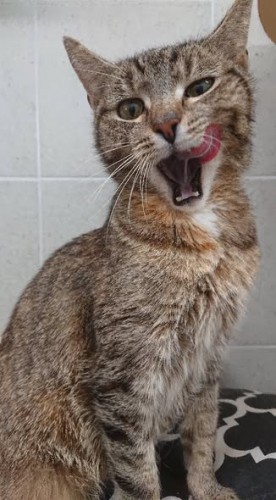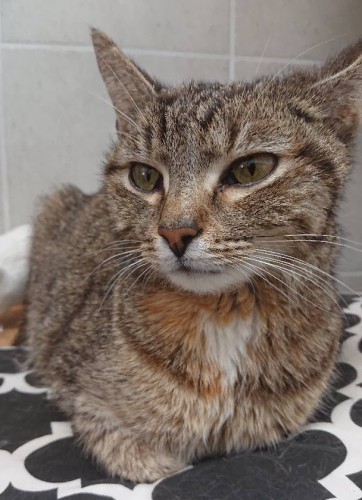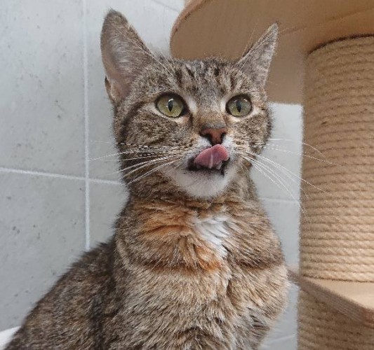 Ma dwa lata, wysterylizowana. Bardzo miła, towarzyska kotka. Przebywa z innymi kotami.