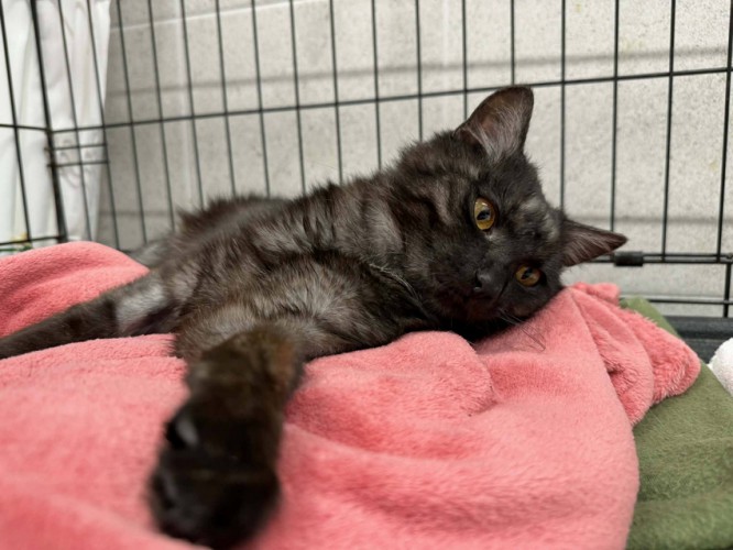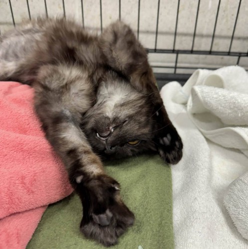 Circle ma trzy lata. Cirkle trafił do schroniska z wypadku, przeszedł zabieg ortopedyczny. Jest rehabilitowany.