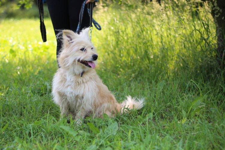 Cookie to średniej wielkości, puszysty piesek w biszkoptowym kolorze. Na początku trudno było mu odnaleźć się w nowej rzeczywistości – szczególnie stresowało go zakładanie obroży czy szelek i źle reagował na dotyk w okolicy szyi. Teraz jednak te problemy ma już za sobą i spokojnie pozwala się ubierać na spacer.