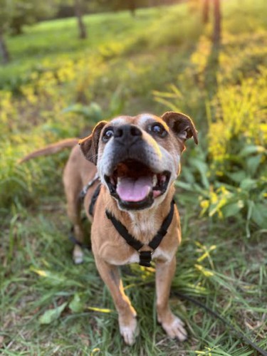 i dreptać na długie spacery. Do perfekcji opanował chodzenie na luźnej smyczy, choć zdarzy mu się wystraszyć przejeżdżającego samochodu. Jest bardzo wpatrzony w swojego opiekuna, z którym mógłby się wybrać nawet na koniec świata! (Bardzo lubi jeździć samochodem.) Dobrze dogaduje się z innymi pieskami, bezproblemowo mija je na spacerze oraz dzieli schroniskowy boks.