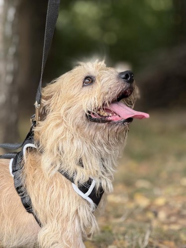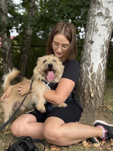 Dziś to już inny pies. Gdy zaufa, otwiera się w pełni – pozwala się czesać, brać na ręce, spokojnie znosi zabiegi. Ma kilka ukochanych wolontariuszek i stopniowo akceptuje nowe osoby. Wobec obcych jest raczej zdystansowany niż agresywny. Potrzebuje czasu i cierpliwości, ale gdy pokocha – jest bezgranicznie oddany.