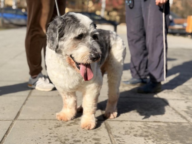 Trafił do schroniska bardzo zaniedbany, po tym jak jego właściciel znalazł się w szpitalu. Mimo tego cierpliwie znosił wszystkie zabiegi pielęgnacyjne i kontrole w lecznicy. Bardzo się cieszy z obecności człowieka i wspólnych spacerów, ładnie chodzi na smyczy. Większość dnia przesypia, zachowuje też czystość w boksie. To psi senior, który szuka spokojnego domu, bez innych psów.