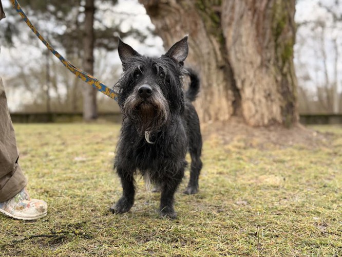 Sympatyczny, kudłaty i delikatny seniorek, który lubi przebywać z człowiekiem, wpatrując się w niego. W schronisku na początku uciekał od ręki, od dotyku, ale powoli przełamujemy lody, w czym pomagają jego ukochane smaczki.