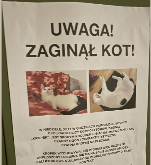 Był kotem wychodzącym i zawsze wracał po 3-4 godzinach, ale tym razem nie wrócił. |