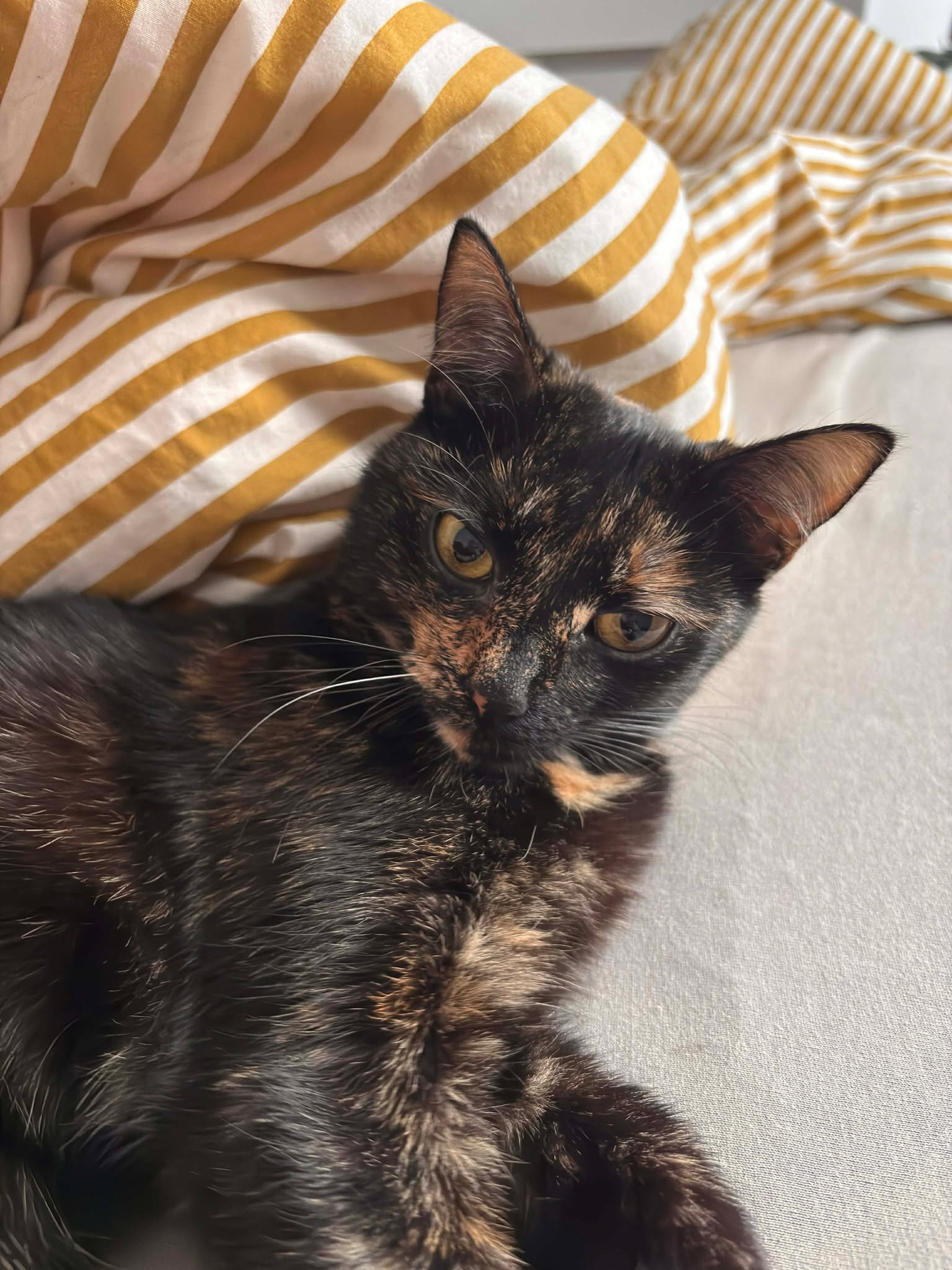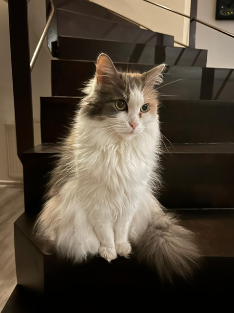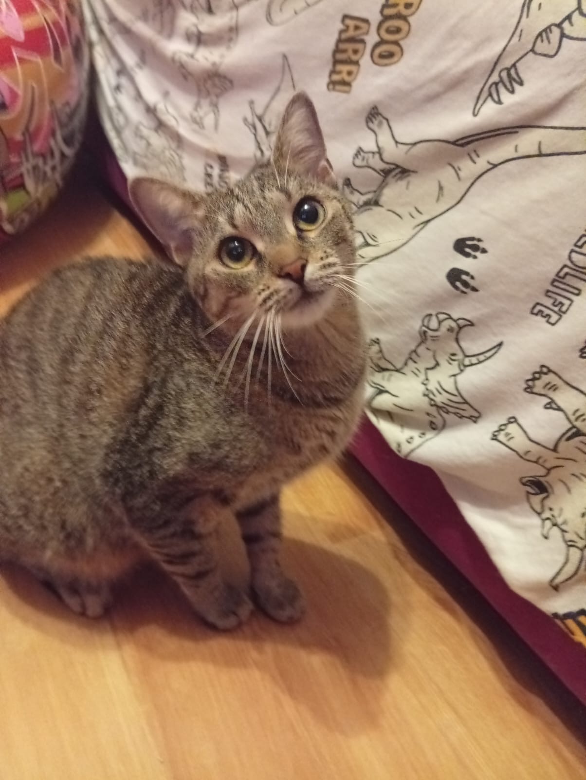 Jest płochliwa i ciężko ją złapać. Nie umie głośno miauczeć. Jest wysterylizowana. |