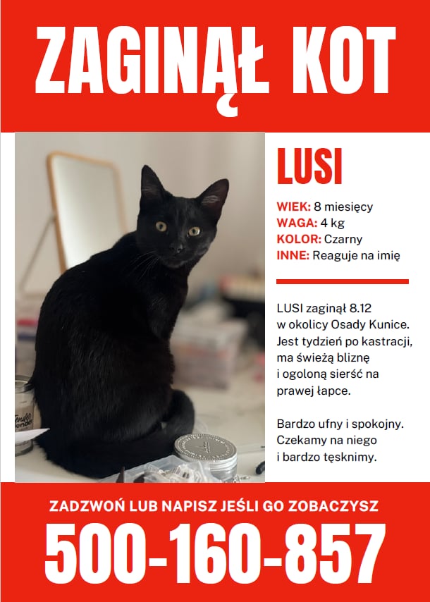 Zaginął 21.02 w sobotę wieczorem przy ul. Zjazdu Gnieźnieńskiego. NAGRODA 3000zł za odnalezenie. |