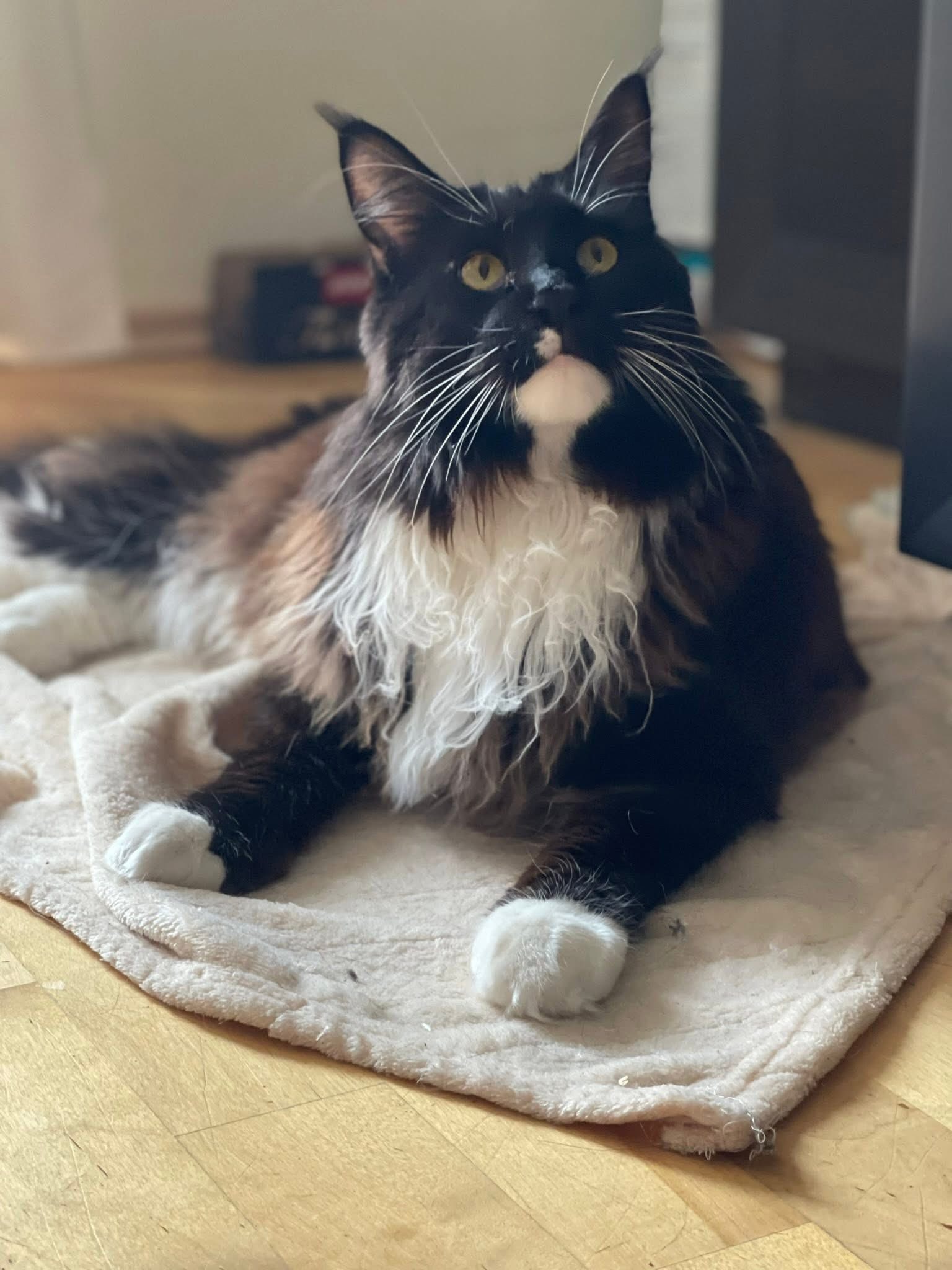 Nero ma prawie 6 lat, jest wykastrowany, ma chorobę lokomocyjną. W domu załatwiaj swoje potrzeby do umywalki, wanny. Głośno wokalizuje gdy jest zamknięty w transporterze. |
