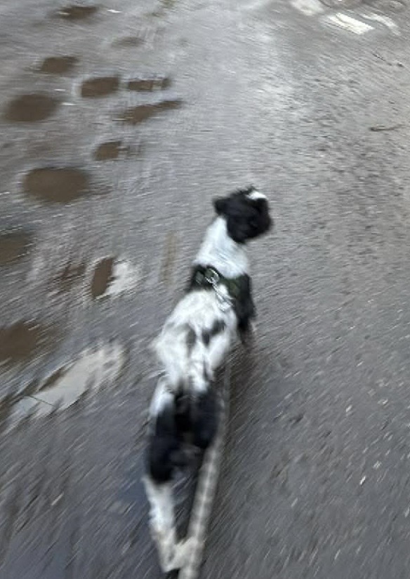 uciekł z domu i nie wrócił ma czarna plamke na przedniej łapce , wabi się Bradley i reaguje na imię. |